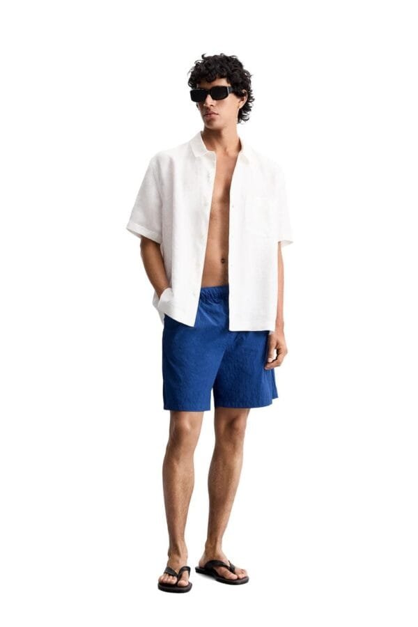 Bermuda em linho azul marinho, confeccionada para oferecer conforto, leveza e sofisticação em uma única peça. O tecido premium de linho proporciona toque macio, respirabilidade e caimento impecável, perfeito para climas quentes ou para composições mais elegantes.